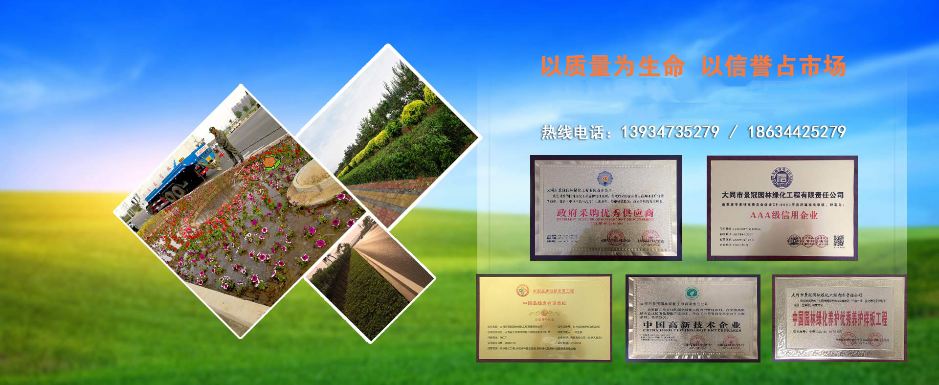 大同市景冠園林綠化工程有限責(zé)任公司是一家根植于設(shè)計、施工、植保養(yǎng)護(hù)、苗木花卉生產(chǎn)于一體的園林景觀企業(yè)。公司“以質(zhì)量為生命”、“以信譽(yù)求發(fā)展”這是公司一貫的經(jīng)營宗旨。并以創(chuàng)新,誠信,綠色,共享的發(fā)展理念,創(chuàng)造良好的企業(yè)環(huán)境。堅持愛綠,護(hù)綠,保綠的方針為城市增添一份綠色,用綠色擔(dān)當(dāng)生態(tài)建設(shè)使命是我們共同追求的價值和企業(yè)目標(biāo)。以全新的管理模式,完善的技術(shù),周到的服務(wù),卓越的品質(zhì)為生存根本。幾年來我們致力于園林景觀植物領(lǐng)域的研究,在城市綜合體景觀,校園園林景觀,道路景觀,生態(tài)農(nóng)業(yè)景觀,美麗鄉(xiāng)村景觀,濕地景觀等多個領(lǐng)域參與規(guī)劃設(shè)計施工。不斷加大科技投入力度,加強(qiáng)人才的儲備,網(wǎng)絡(luò)技術(shù)的培訓(xùn),提升自主創(chuàng)新能力,不斷完善企業(yè)文化,用超前的技術(shù)制定出一套完整的園林植保技術(shù)管理方案。我們堅持以擔(dān)當(dāng)為使命,用戶至上,服務(wù)至上,秉持初衷,不忘初心,實實在在,心無旁騖做好植保養(yǎng)護(hù)主業(yè),打造屬于自己的企業(yè)品牌,好好服務(wù)客戶,打動客戶。